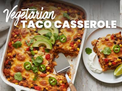 Hey there, Reader! We live in South Texas, where tacos are basically a food group. We love crunchy tacos, soft tacos, taco salad, you name it. While tacos themselves are pretty easy to make, sometimes it’s nice just to throw everything in one dish and not have to mess with cooking the filling, heating the shells or tortillas, making all the toppings, and then putting it all together. This vegetarian taco casserole has everything you love about tacos, baked into one comforting, scoopable dish....